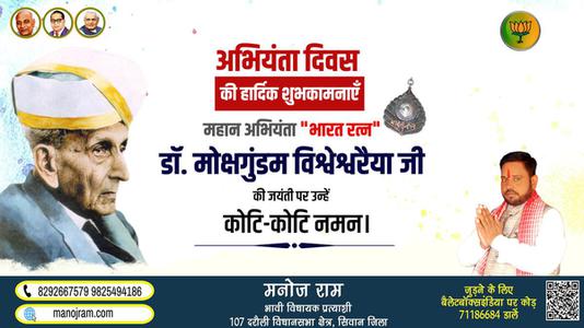 मनोज राम-इंजिनियर दिवस की आप सभी देशवासियों को हार्दिक शुभकामनाये