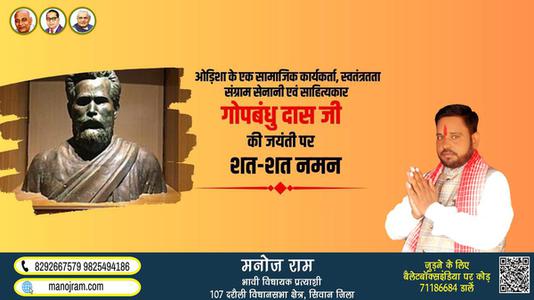 मनोज राम-प्रसिद्ध स्वतंत्रता सेनानी,पत्रकार,कवि गोपबंधु दास जी की जयंती पर शत-शत नमन