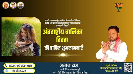 मनोज राम-अंताराष्ट्रीय बालिका दिवस की सभी देशवासियों को हार्दिक शुभकामनाएं