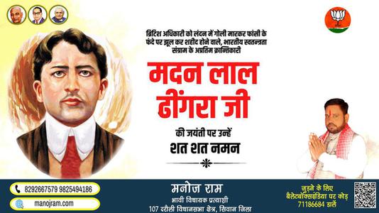 मनोज राम- मदन लाल ढींगरा जी की जयंती पर उन्हें कोटि कोटि नमन