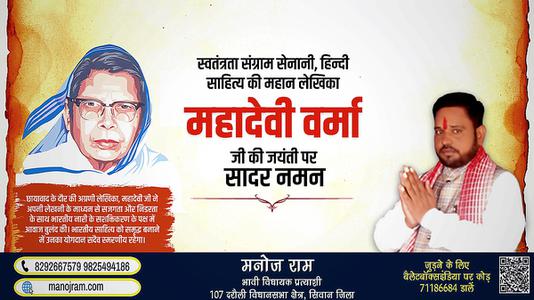 मनोज राम-महादेवी वर्मा जी की जयंती पर शत शत नमन