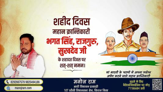 मनोज राम-महान स्वतंत्रता सेनानी भगत सिंह, राजगुरु और सुखदेव के शहीदी दिवस पर शत शत नमन