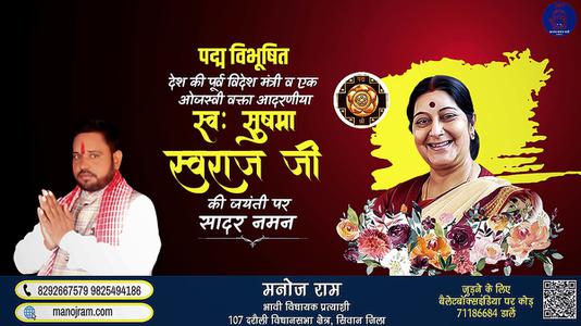 विधानसभा क्षेत्र के भावी विधायक भाजपा प्रत्याशी मनोज कुमार राम जी ने बताया कि भारतीय राजनीति के सर्वमान्य राष्ट्रवादी नेता, भारत के पूर्व प्...