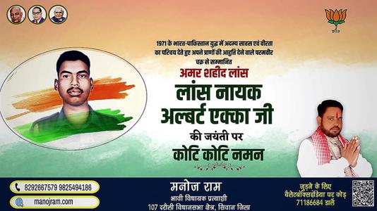 मनोज राम-लांस नायक अल्बर्ट एक्का जी की जयंती पर शत् शत् नमन